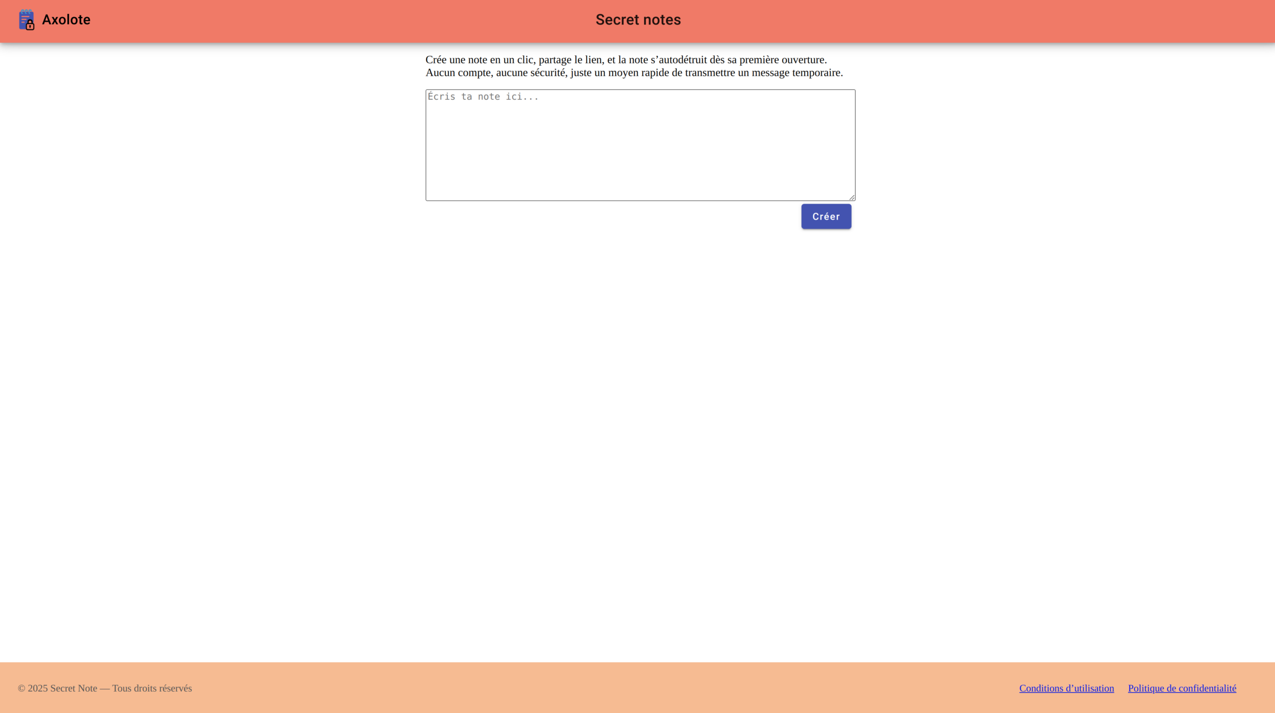 L’application encrypte le contenu et enregistre dans sa base de données. L’identifiant de la note peut être transmis à travers un lien. Lorsque la note est ouverte, elle sera détruite.